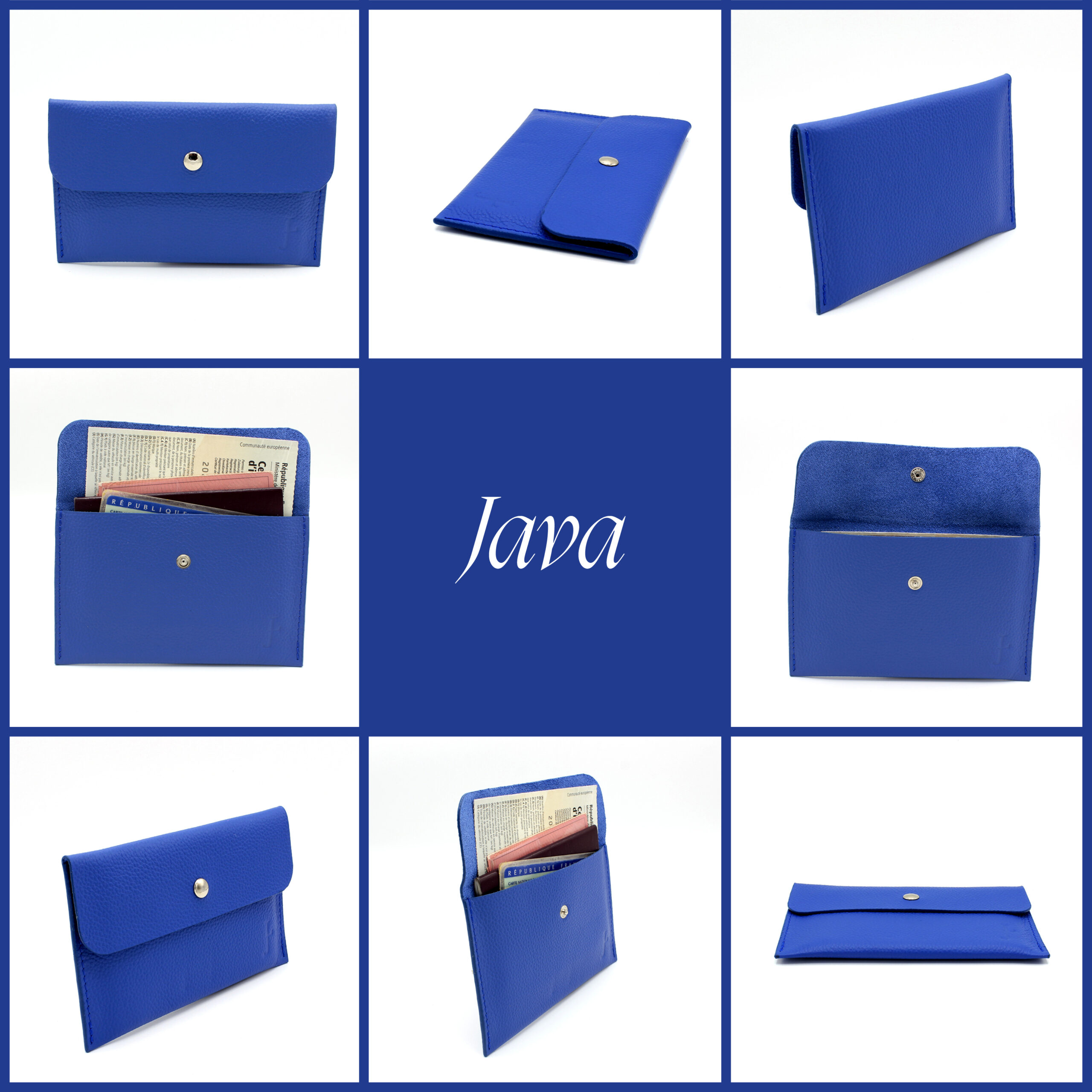 La pochette fine Java abrite sous son rabat de cuir vos papiers d’identités, de voiture, de santé ou tous autres petits objets précieux (disque dur, clés USB, bijoux, photos…). Elle se ferme avec une pression pour assurer une protection optimale.