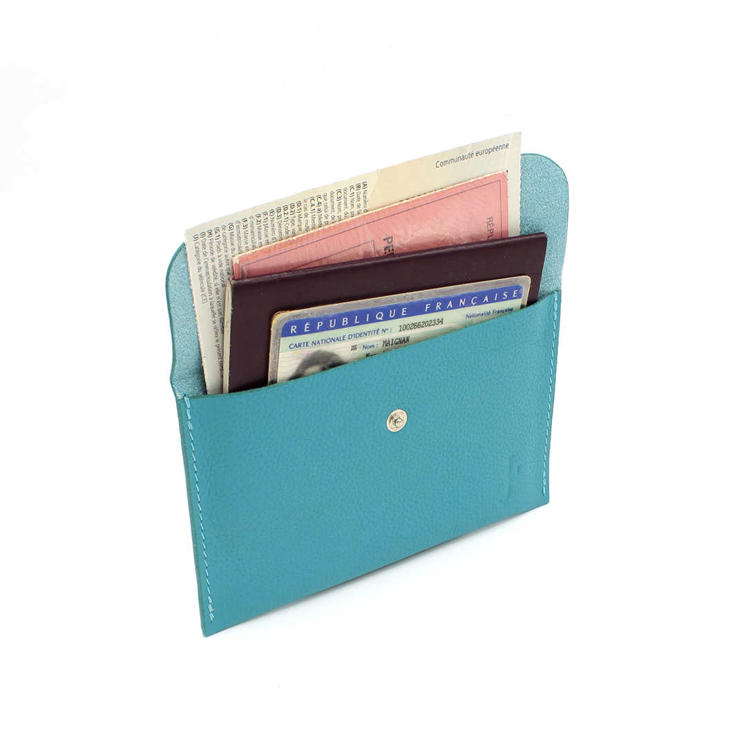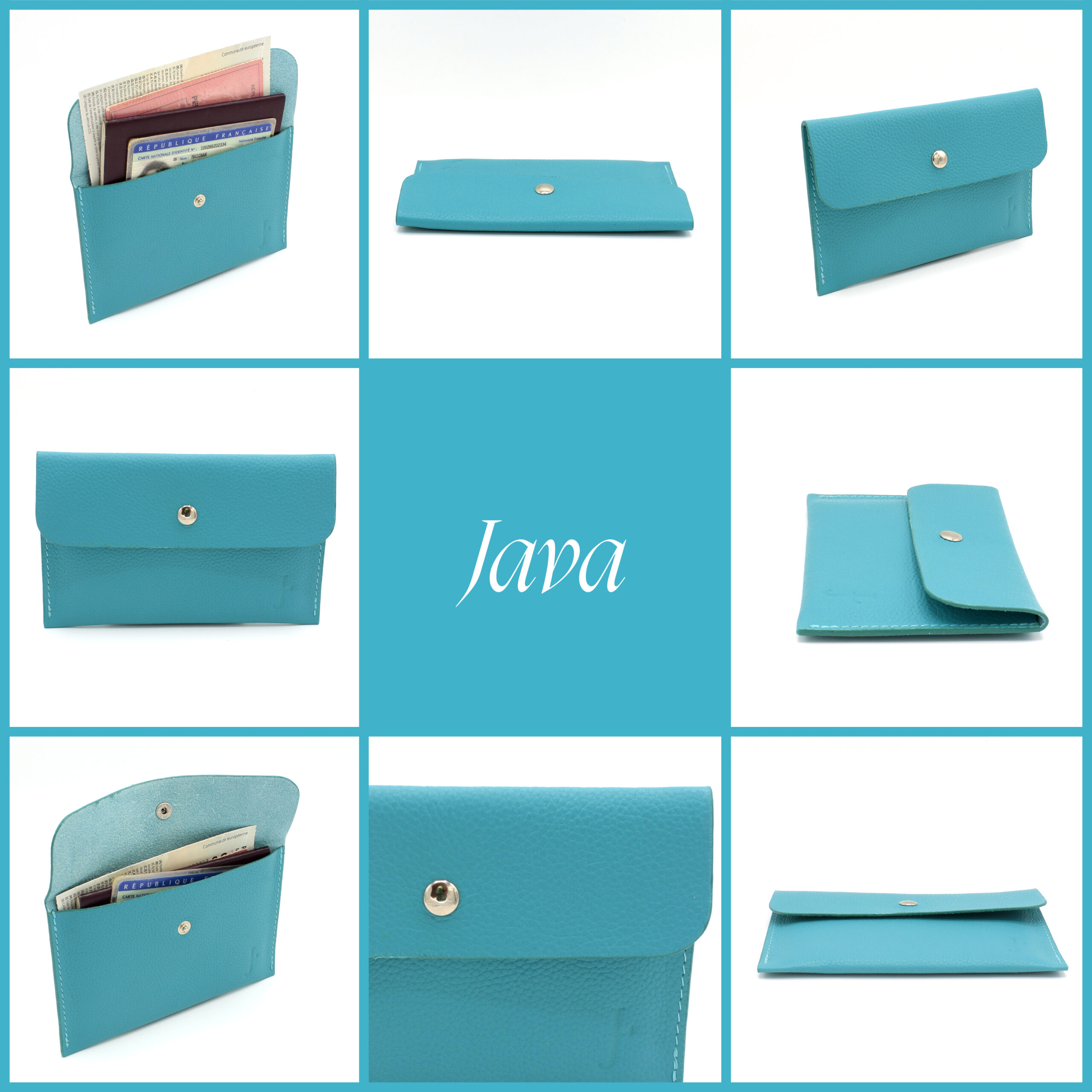 La pochette fine Java abrite sous son rabat de cuir vos papiers d’identités, de voiture, de santé ou tous autres petits objets précieux (disque dur, clés USB, bijoux, photos…). Elle se ferme avec une pression pour assurer une protection optimale.